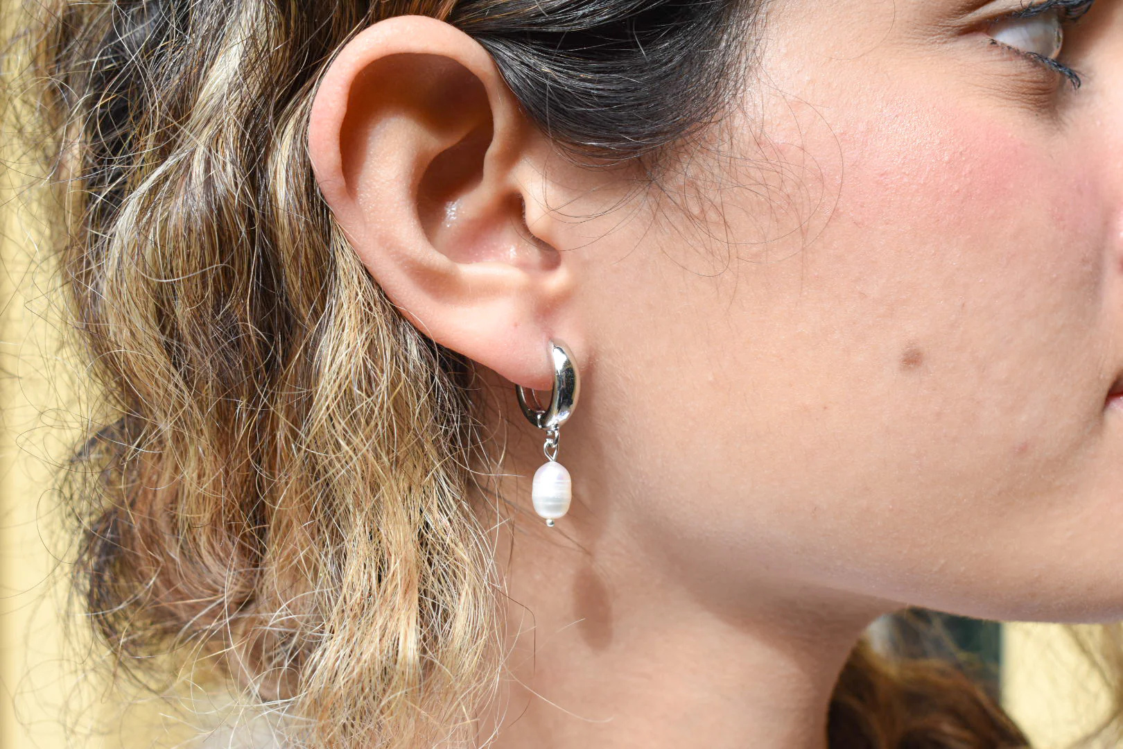 Chunky Silver Pearl Huggies
